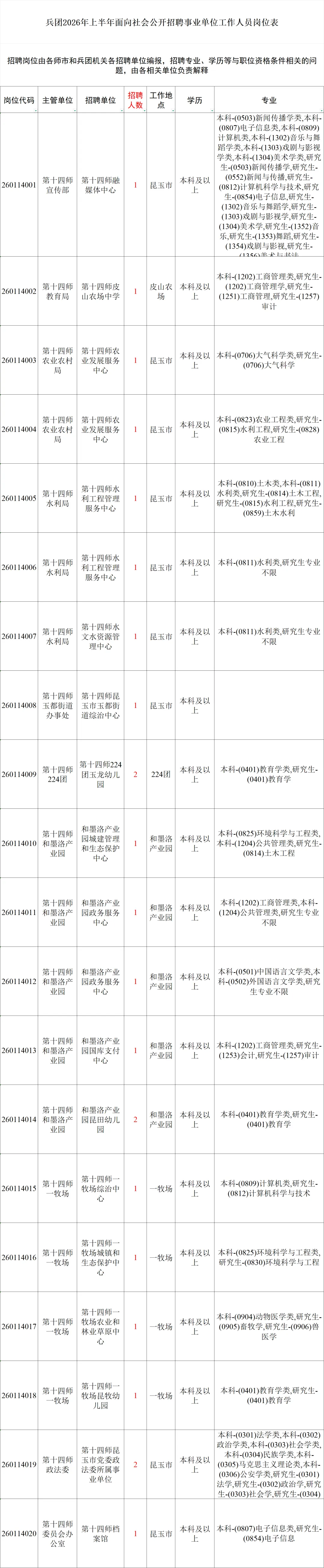 1.兵团2026年上半年招聘事业单位工作人员公告