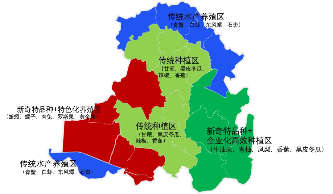 --热带高效农业高质量发展集聚区(中部、北部、西部农业大村)。