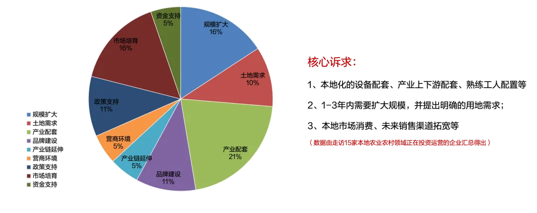 · 普遍诉求:企业最迫切的需求集中在产业用地保障、冷链仓储配套、农业保险支持、品牌打造四个方面。