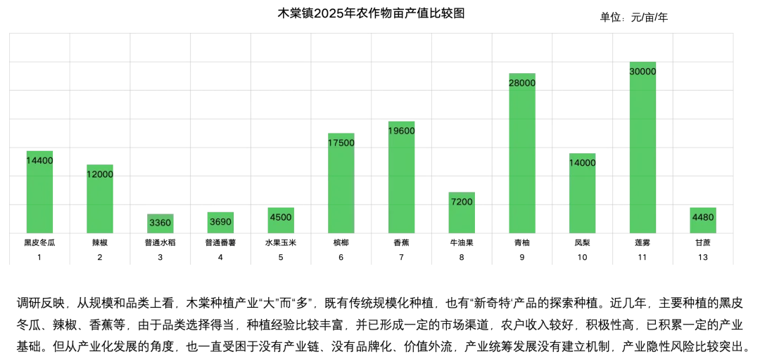 通过调研,木棠镇农业产业的整体画像清晰起来:“大、多、特”与“定位不清、大而不强”并存。