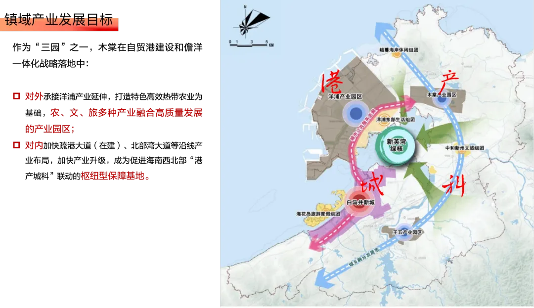 木棠镇凭借独特的区位优势(北承洋浦、南接园区、东连中和、西通王五),被定位为促进海南西北部“港产城科”联动的枢纽型保障基地,对外承接洋浦产业延伸,对内打造农文旅融合的高质量发展园区。