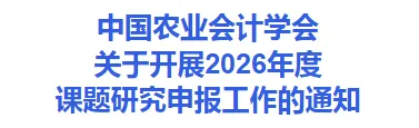为深入贯彻党的二十大和二十届四中全会精神,认真落实中央农村工作会议、全国会计管理工作会议部署,更好发挥农业系统财务会计在推进乡村全面振兴、加快建设农业强国中的作用,更好服务农业农村高质量发展,中国农业会计学会现组织开展2026年度课题研究申报工作,有关事项通知如下: