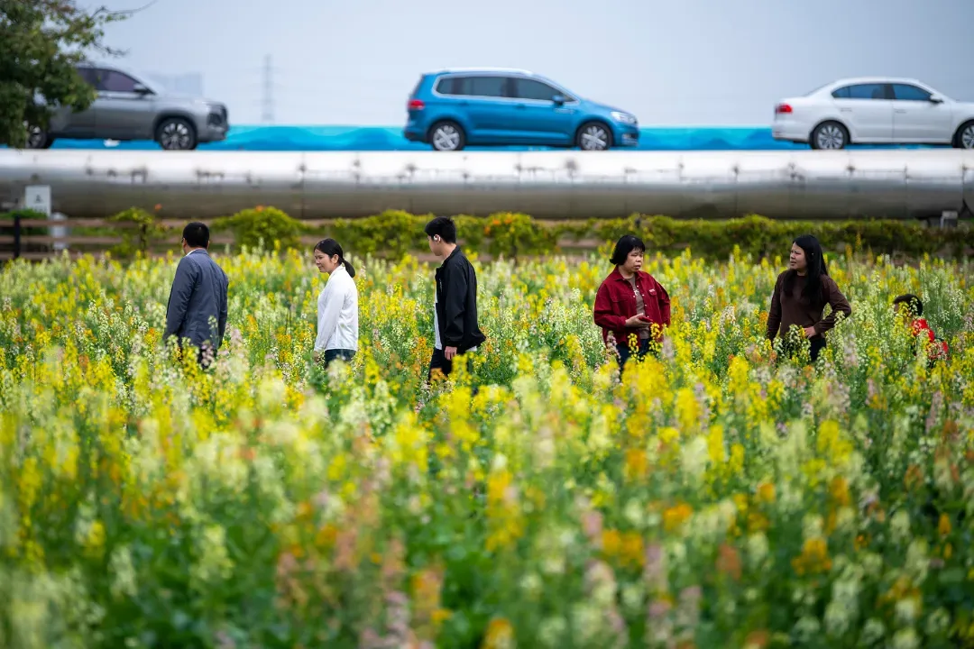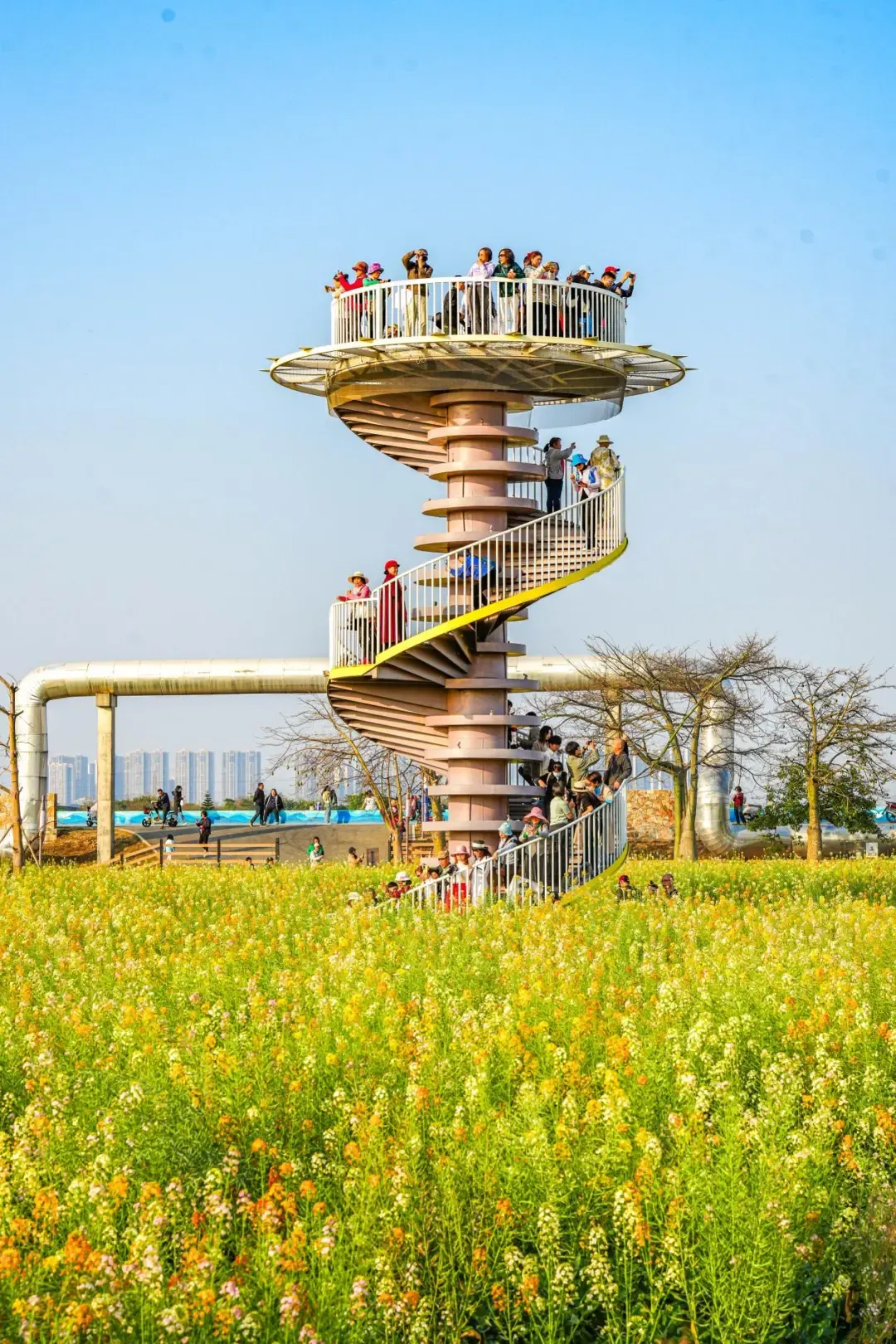 花海+江景:一边是绚烂花浪,一边是开阔江岸,春日氛围直接拉满;