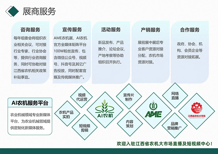 农业大棚及配套设施、农业灌溉系统、农业排水系统、农业废弃物处理设备、农业物流设备、农业包装材料(如防潮袋、真空袋)、农业技术咨询、农机维修服务、农业培训服务等。