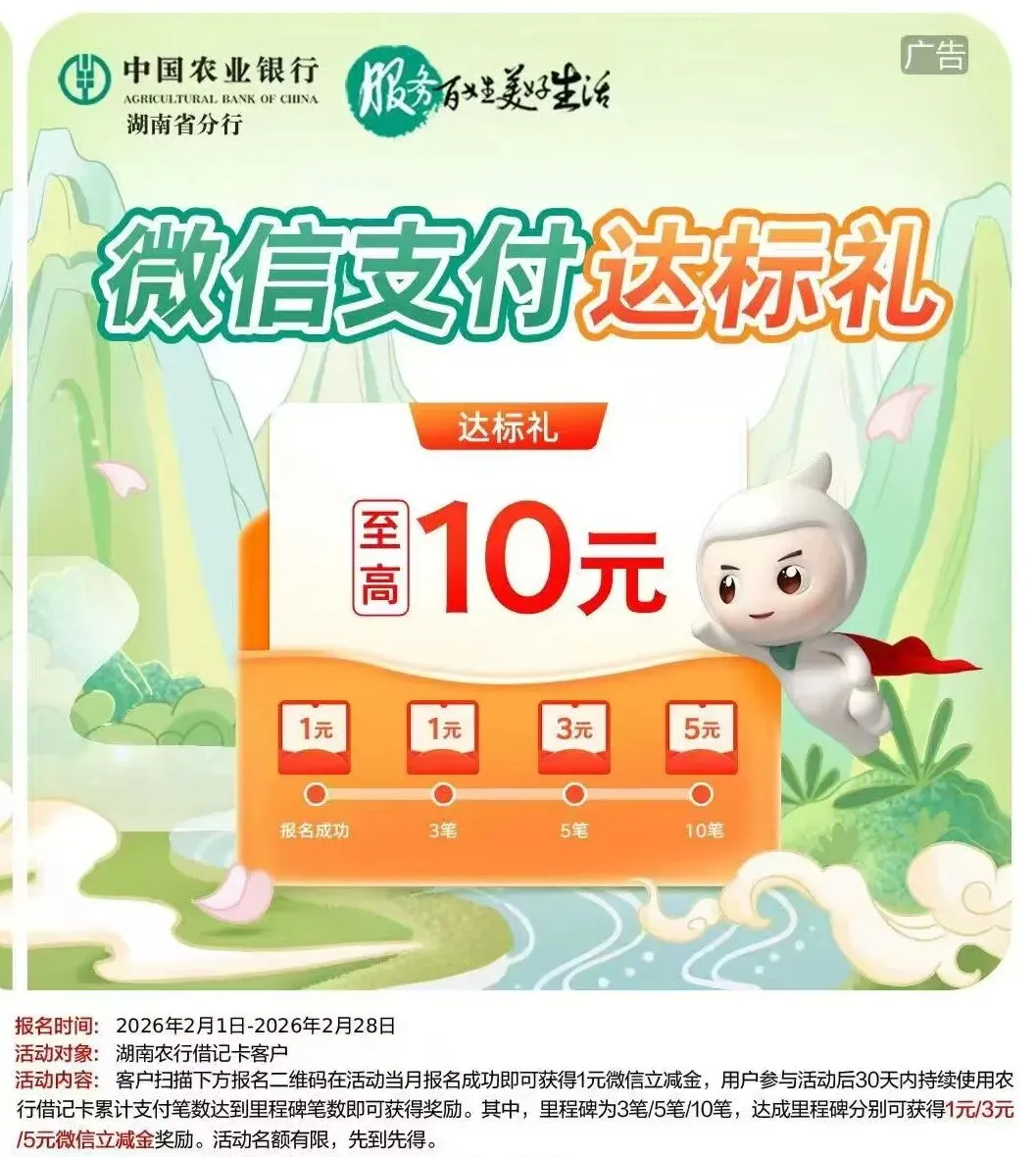 2026年3月微信支付 重庆农业银行微信月月刷