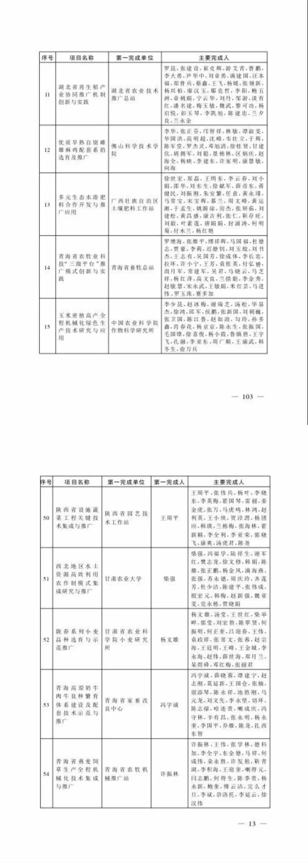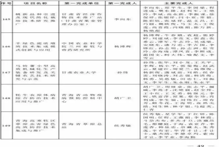 今年的丰收奖申报过程中,省农业农村厅根据农业农村部要求提早着手准备,严格程序,突出实绩,精准推荐,全省共推荐33个奖项,经农业农村部组织专家盲审、复议、答辩等环节后最终确定青海省26个项目和个人入围获奖名单,比2014-2016年多15项,获奖项目和个人创历届最高。特别是“一等奖”和“合作奖”取得重大突破。本届一等奖名单中青海省“青海省燕麦饲草生产全程机械化技术集成与推广”(省农牧机械推广站)和“青海高原奶牛肉牛良种繁育体系建设及配套技术示范与推广”(省家畜改良中心)等2个项目登榜,打破了青海省2008年以来该奖项的空缺;由全省十大产业科技创新平台联合申报的“青海省农牧业科技“三级平台”推广模式创新与实践”荣膺“合作奖”榜单,第1完成人省畜牧总站罗增海教授入选全国10名代表进京领奖,并受到胡春华副总理亲切接见,我省以“三级平台”为框架的农牧业科技推广机制得到了农业农村部和全国同行的高度认可。