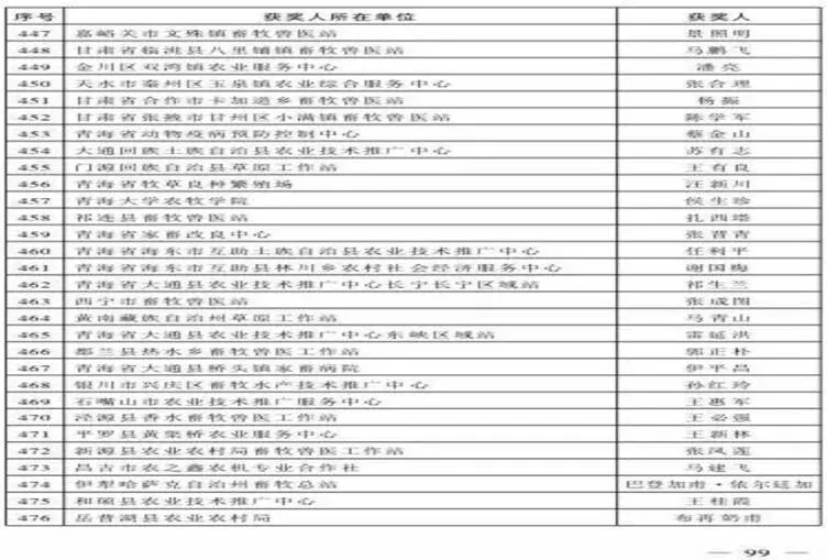 日前,农业农村部关于2016-2018年度“全国农牧渔业丰收奖”(以下简称丰收奖)结果(农科教[2019] 4号)正式公布,青海省共26个项目和个人获奖,“青海省燕麦饲草生产全程机械化技术集成与推广”等2个项目荣获成果奖一等奖;“牦牛衣原体病综合防治技术应用与推广”等2个项目荣获成果奖二等奖;“高产优质青稞品种示范推广及产业化应用”等6个项目荣获成果奖三等奖;蔡金山等15名同志荣获“贡献奖”;“青海省农牧业科技‘三级平台’推广模式创新与实践”荣获“合作奖”,农牧渔业丰收奖全面开花,喜获“丰收”。