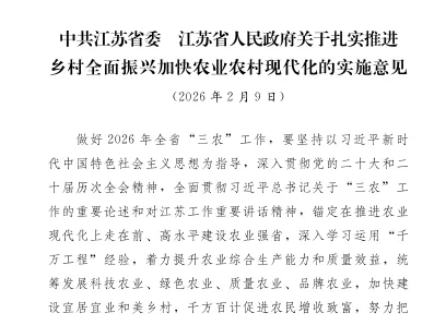 做好2026年全省“三农”工作,要坚持以习近平新时代中国特色社会主义思想为指导,深入贯彻党的二十大和二十届历次全会精神,全面贯彻习近平总书记关于“三农”工作的重要论述和对江苏工作重要讲话精神,锚定在推进农业现代化上走在前、高水平建设农业强省,深入学习运用“千万工程”经验,着力提升农业综合生产能力和质量效益,统筹发展科技农业、绿色农业、质量农业、品牌农业,加快建设宜居宜业和美乡村,千方百计促进农民增收致富,努力把农业建成现代化大产业、使农村基本具备现代生活条件、让农民生活更加富裕美好。