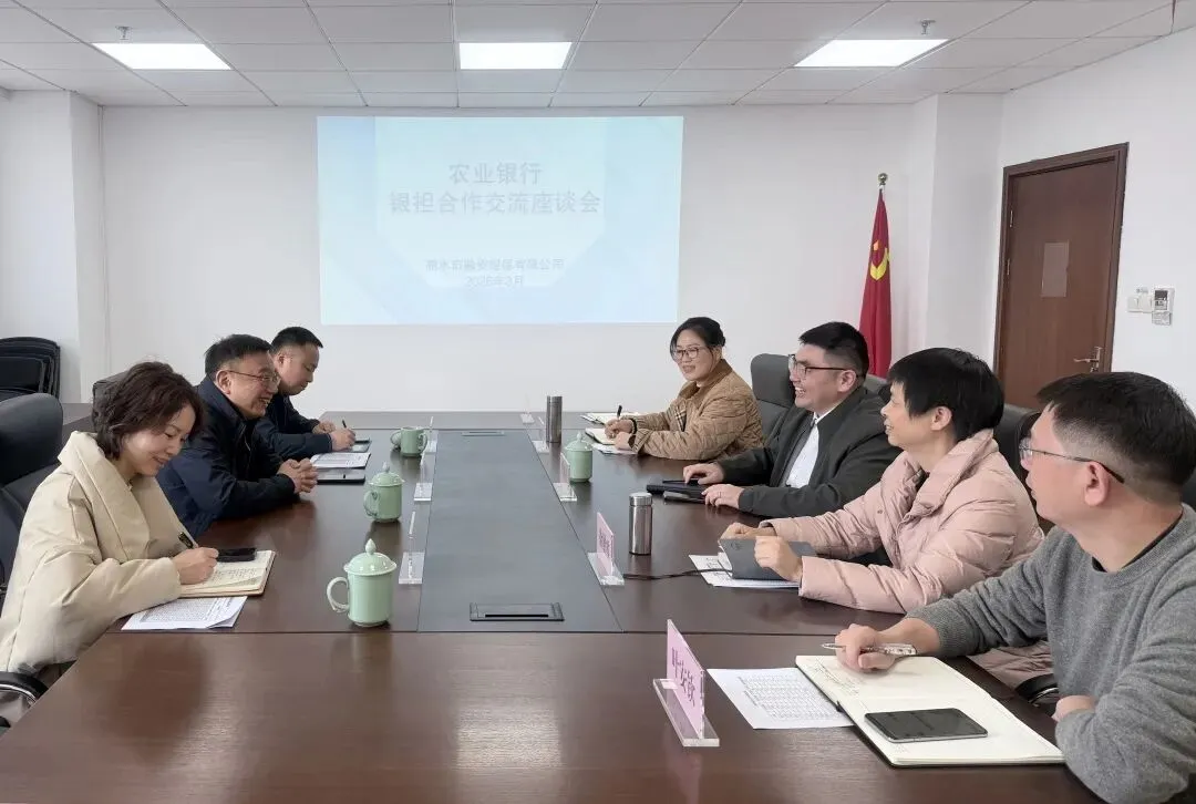 下午,农业银行丽水市分行副行长张前进一行到访座谈。双方围绕强化银担协同、加强风险防控、提升服务质效等进行深入研讨,充分肯定近年来银担合作成效,就进一步在乡村振兴、民间投资等领域深化合作达成共识,共同为地方经济发展注入金融动能。