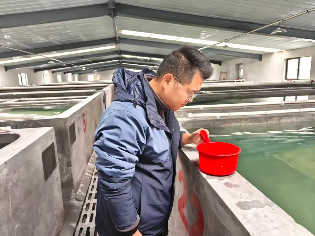 在文成县渔业种苗繁育中心查看虾苗生产情况