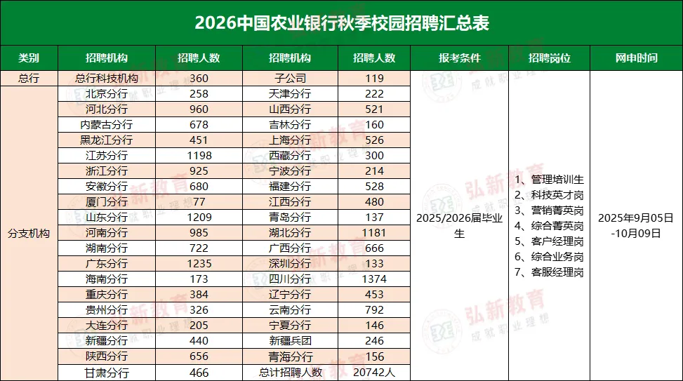 2026年农业银行秋招共计招录20742人,2026年预计维持这一招聘规模。应届生重点关注的核心方向。