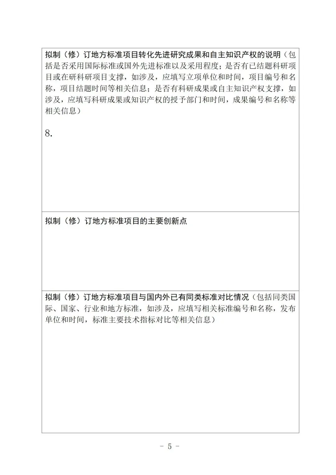 5.已发布实施的地方标准,所依据的法律法规和政策发生变化的或同类国家标准、行业标准发生变化的以及地方标准相关技术要求发生变化的,可以申报地方标准修订项目;