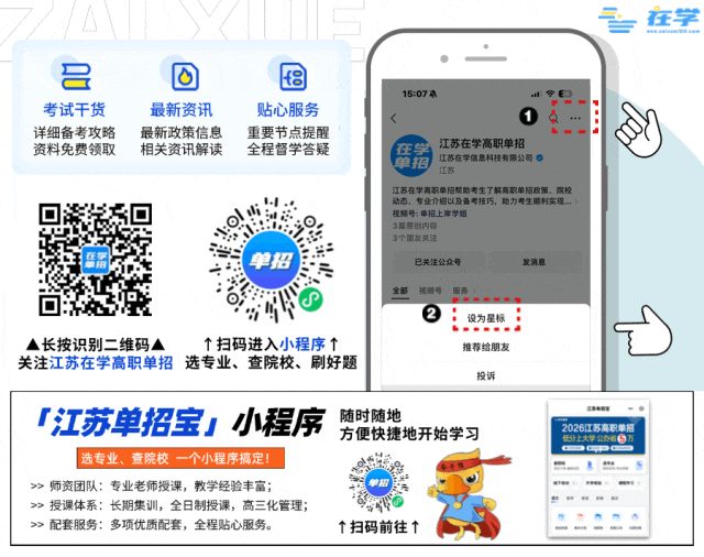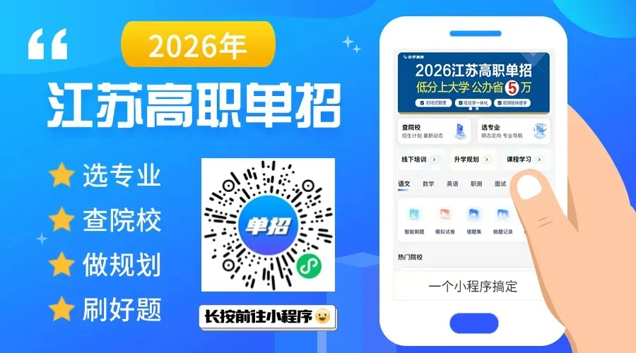 ②报名网址及志愿填报:江苏省教育考试院考生服务平台(gk.jseea.cn)。每位考生可填报1所高职院校,可向填报院校申请6个专业并明确专业调剂意向。