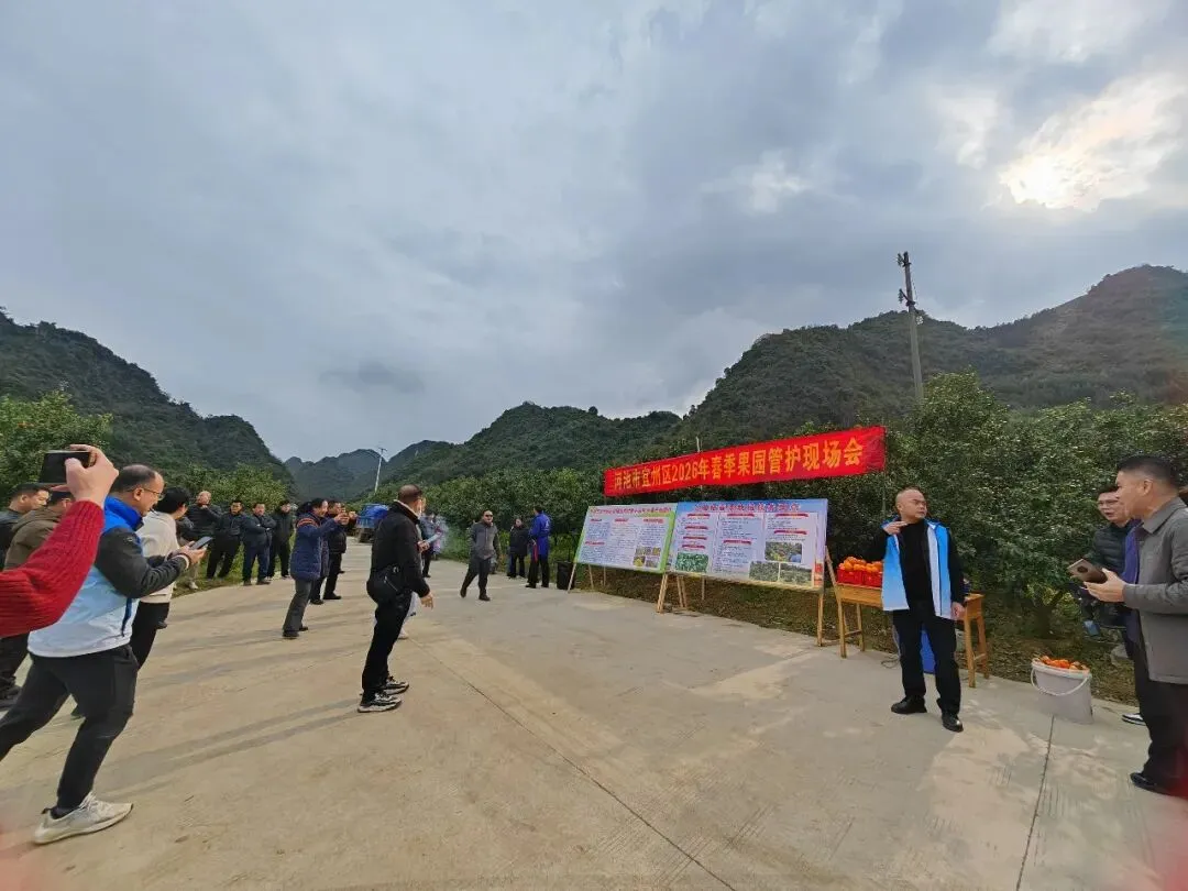 春意盎然,万象“耕”新。眼下正值春耕生产的关键时节,3月3日,宜州区2026年春季果园管护现场会在石别镇召开。来自区农业农村局的相关负责人、各乡镇相关负责人、农业技术员等百余人齐聚石别镇,通过“实地观摩+技术交流”,共同擘画春耕生产“作战图”,奏响果园管护“进行曲”。