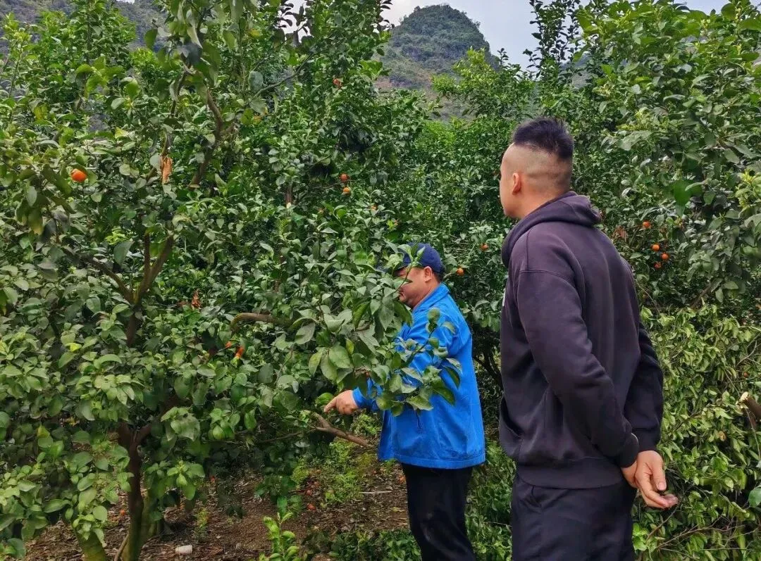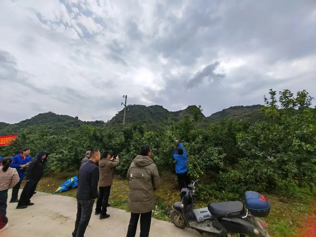 观摩团一行抵达位于石别镇拉并村萝卜洞屯的水果示范园。放眼望去,成片的柑橘树枝叶舒展,果农们正抢抓晴好天气开展春季修剪与病虫害防治作业,一派繁忙有序的春管景象。