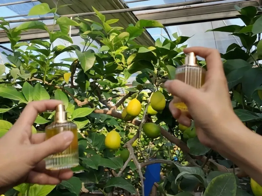 用园区自产柠檬、柚子提炼的纯精油,制作成香水,装进定制水晶瓶,带走独属于你的专属气息,健康温和不刺鼻,颜值与实用性拉满。