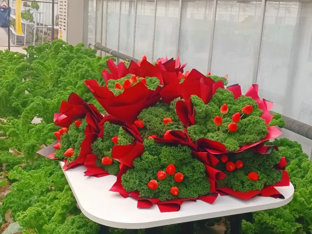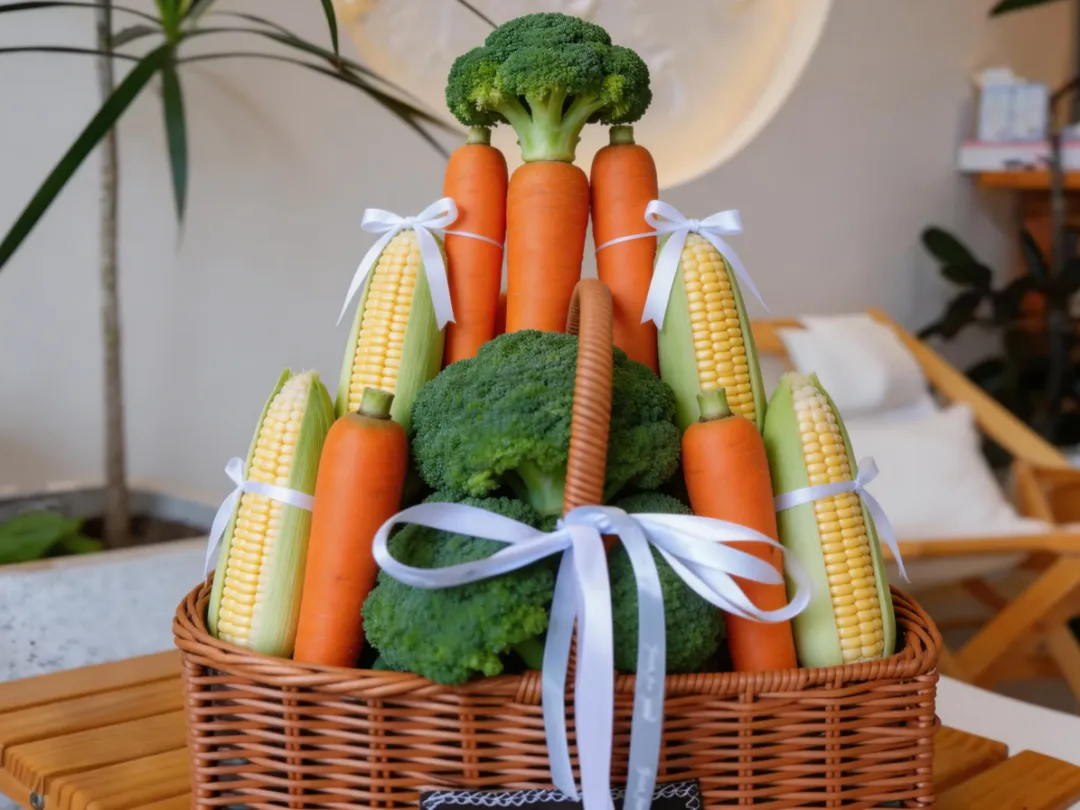 用草莓、彩椒、玉米、羽衣甘蓝等新鲜食材,DIY独一无二的果蔬花束!每一款都凭借食材本身的色彩与形态碰撞出别致美感,兼具观赏性与可食性,无论是自拍打卡还是当作节日伴手礼,都特别吸睛。🥕🍓