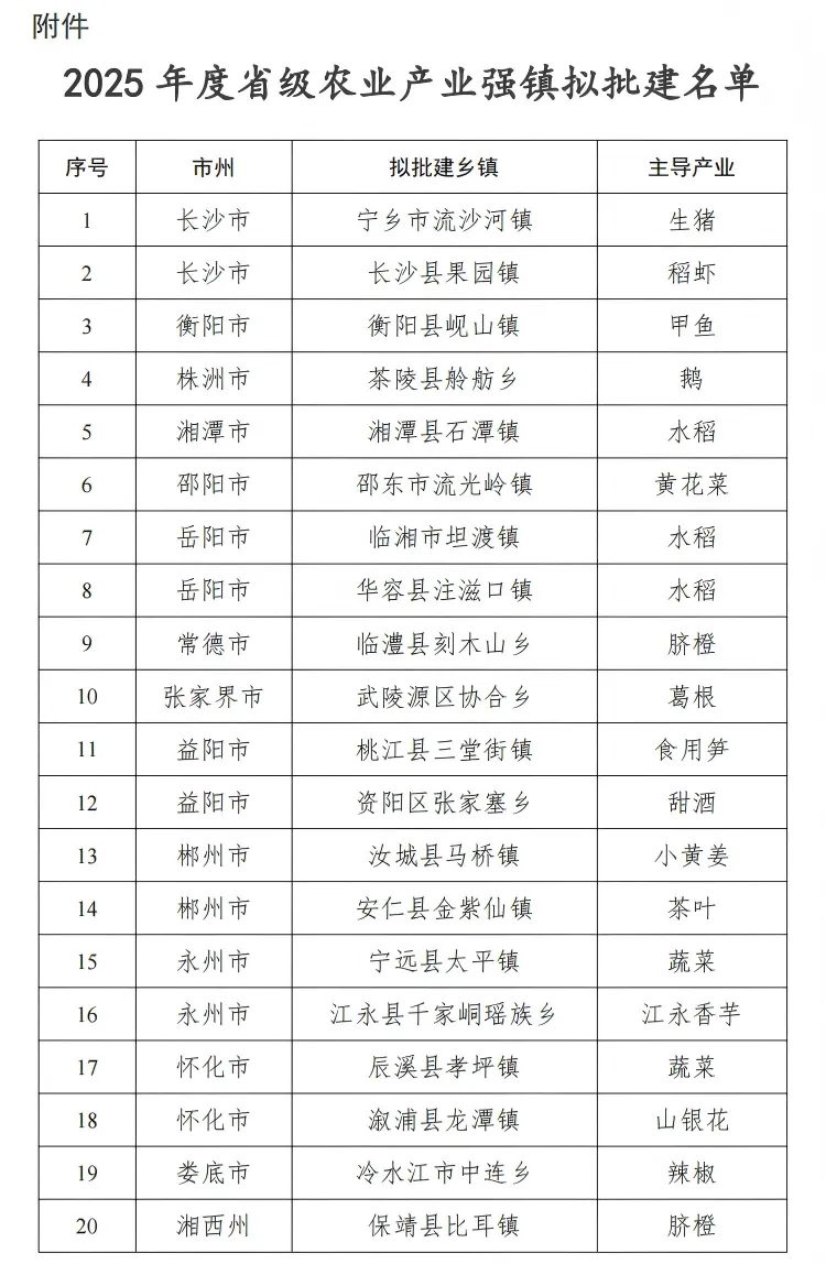 2024年获批建设的长沙县春华镇主导农产业是水稻,连续多年获评长沙市粮食生产先进单位,是省农业(种业)特色小镇。该镇大力发展院士农业、数字农业和都市农业,全镇从事优质稻及关联产业人员上万人,官春云、邹学校、柏连阳等多位农业院士在春华镇试种“试验田”,开展科研攻关。