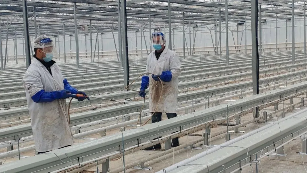 公司依托智慧温室技术,推行精细化管理,严守农产品质量底线,该项消杀工作预计3月4日完成。后续将有序调试水肥系统、筹备种植基质,全力保障番茄苗按时高质量定植,力争实现新产季1480吨串收番茄产量、2400万元产值目标,助力师市现代农业高质量发展。