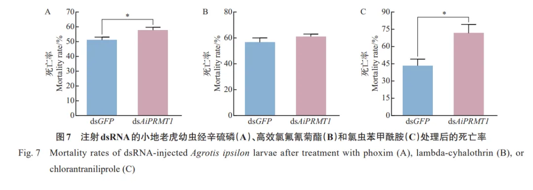 李响,张今,沈望熙,等.沉默AiPRMT1基因降低小地老虎对辛硫磷和氯虫苯甲酰胺的耐受性[J].浙江大学学报(农业与生命科学版),2026,52(1):63-72. DOI:10.3785/j.issn.1008-9209.2025.01.061