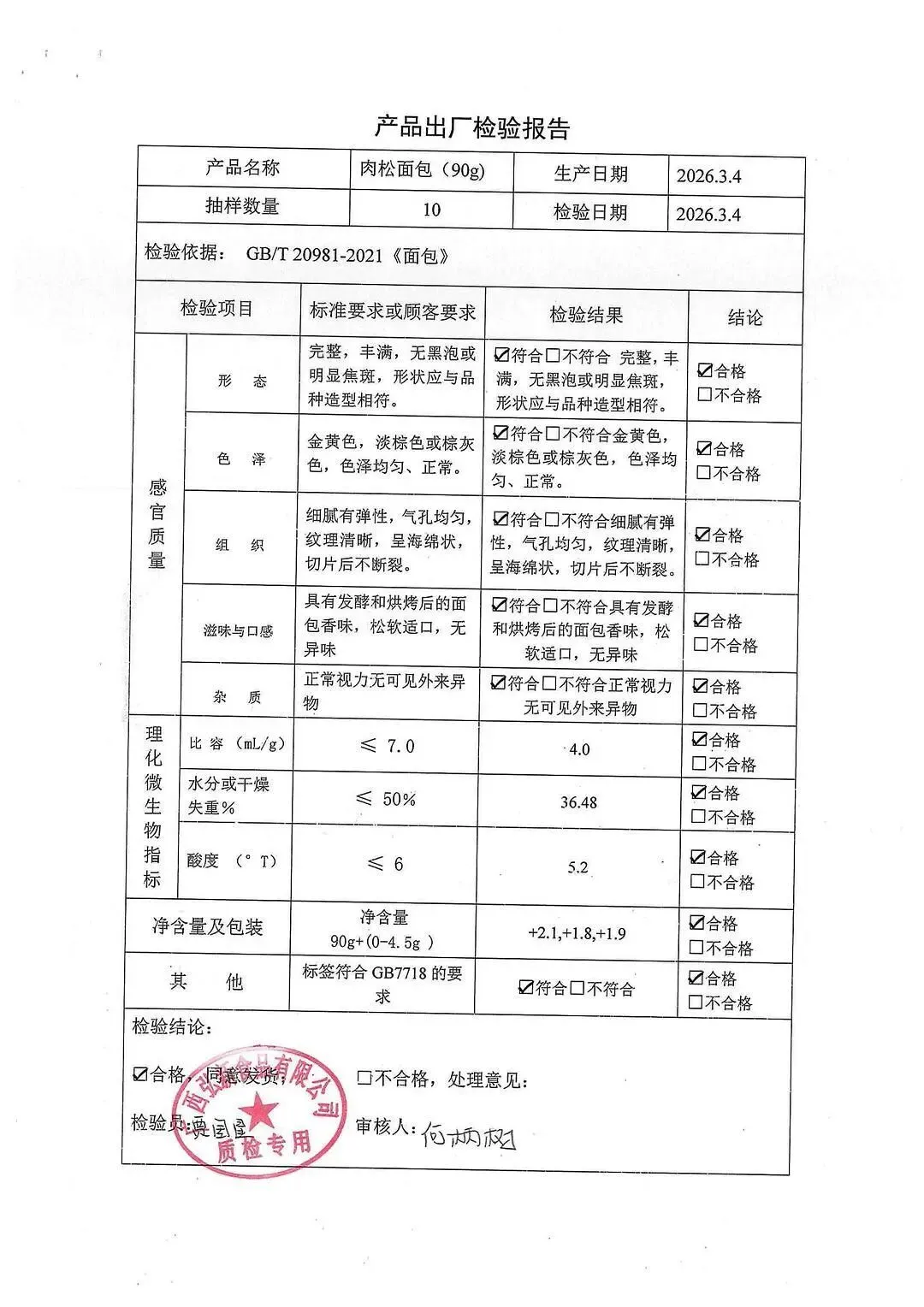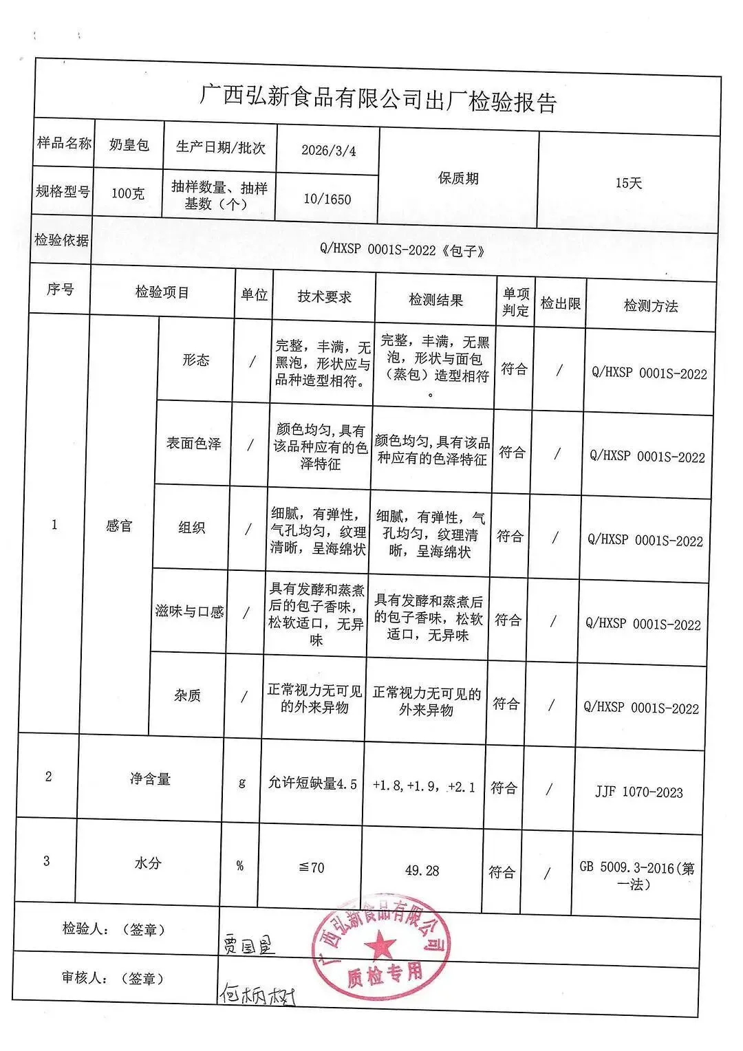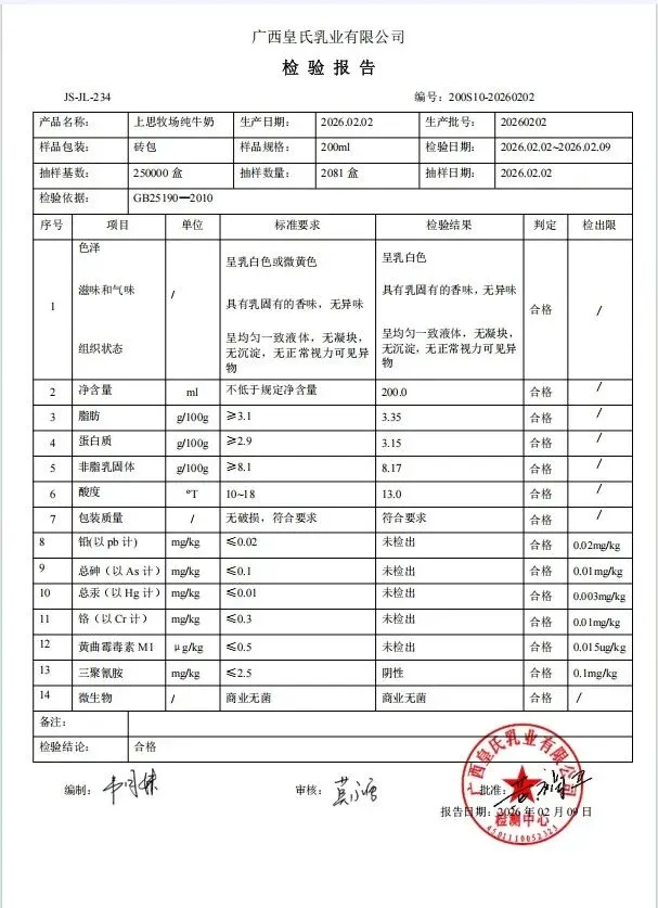 包子、面包、面粉、淀粉、牛奶检测报告