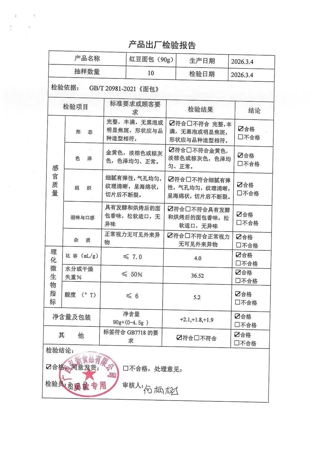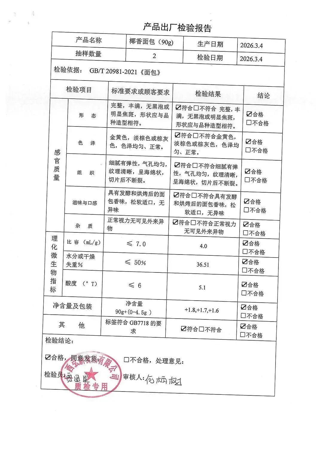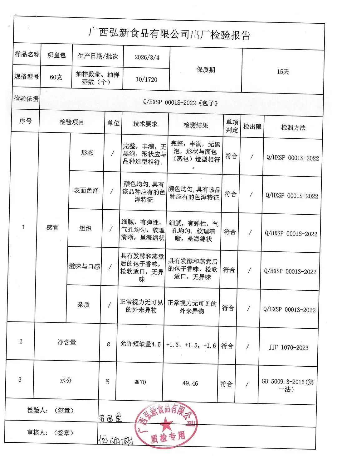 包子、面包、面粉、淀粉、牛奶检测报告
