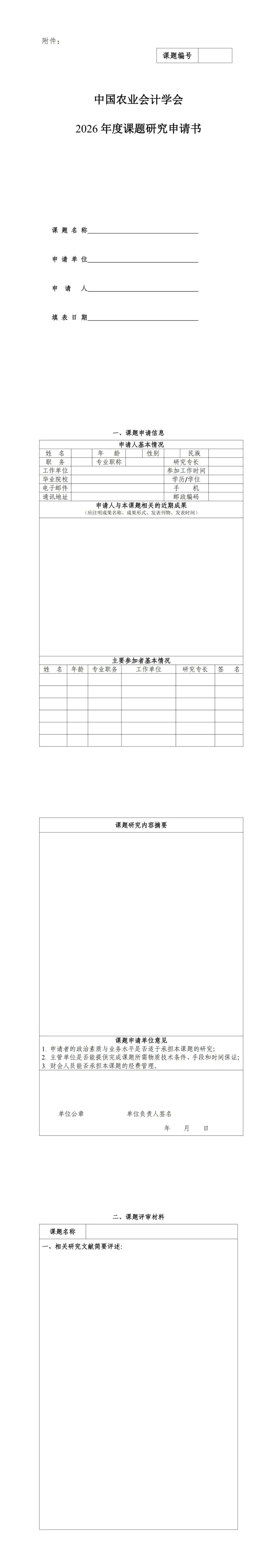 附件:中国农业会计学会2026年度课题研究申请书.docx