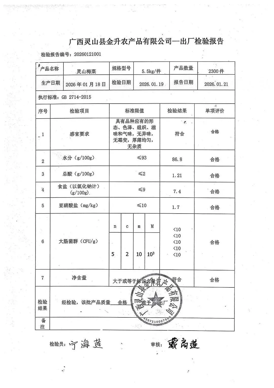 金浦供应链&禾美农业-03月05日蛋类、酱腌菜、肉类、蔬菜、水豆腐、鲜湿淀粉条检测 报告