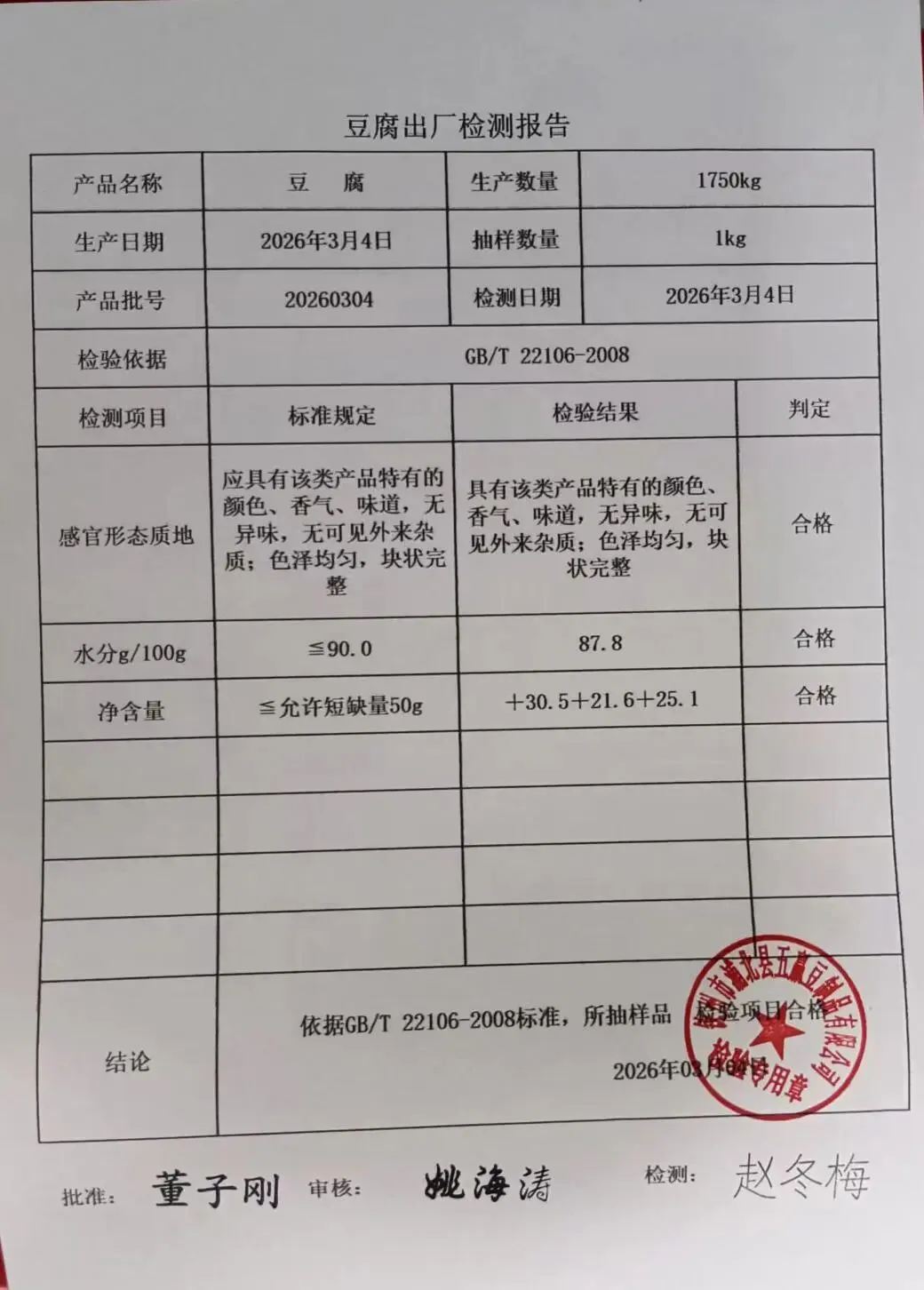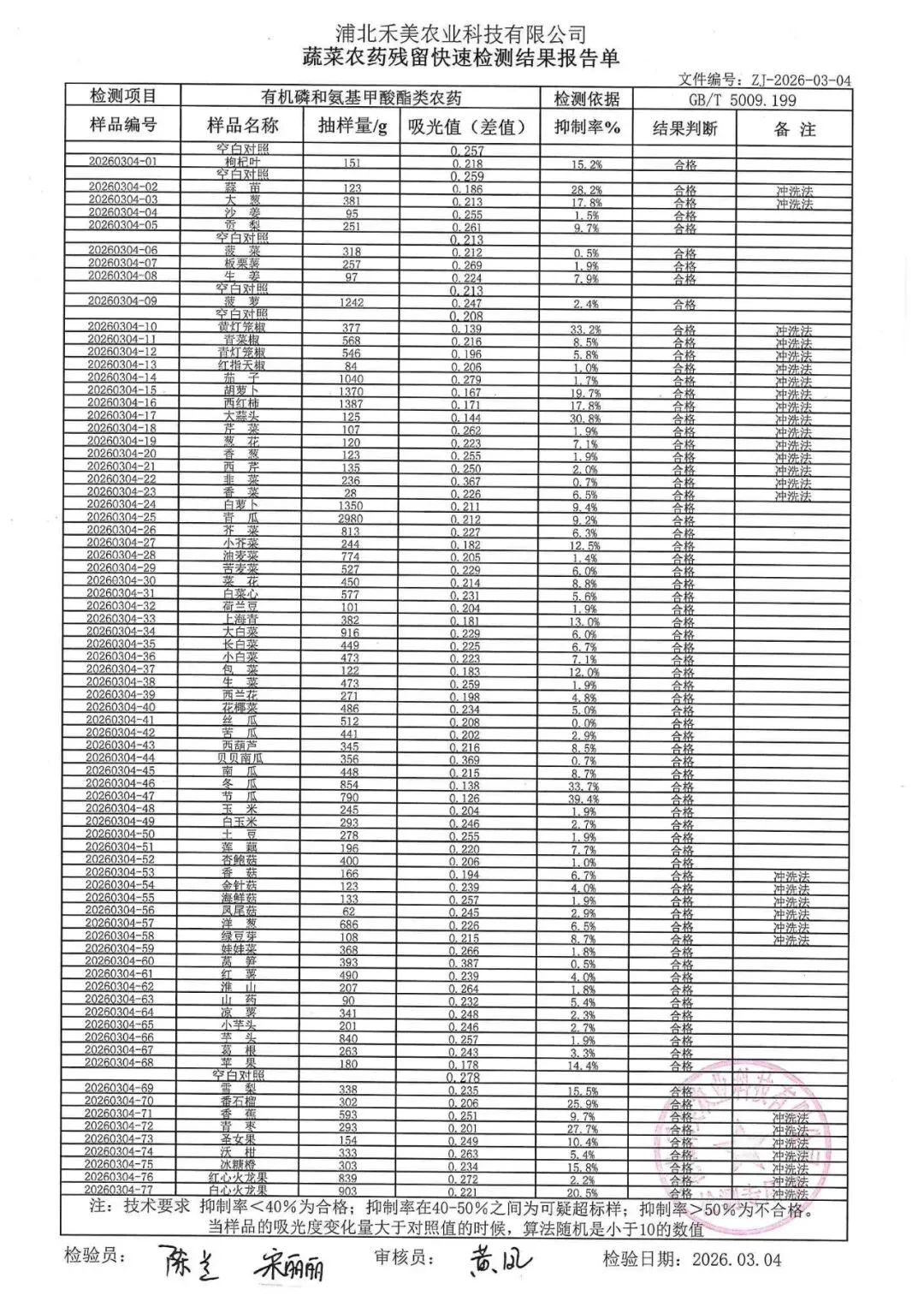 >金浦供应链&禾美农业-03月05日蛋类、酱腌菜、肉类、蔬菜、水豆腐、鲜湿淀粉条检测 报告