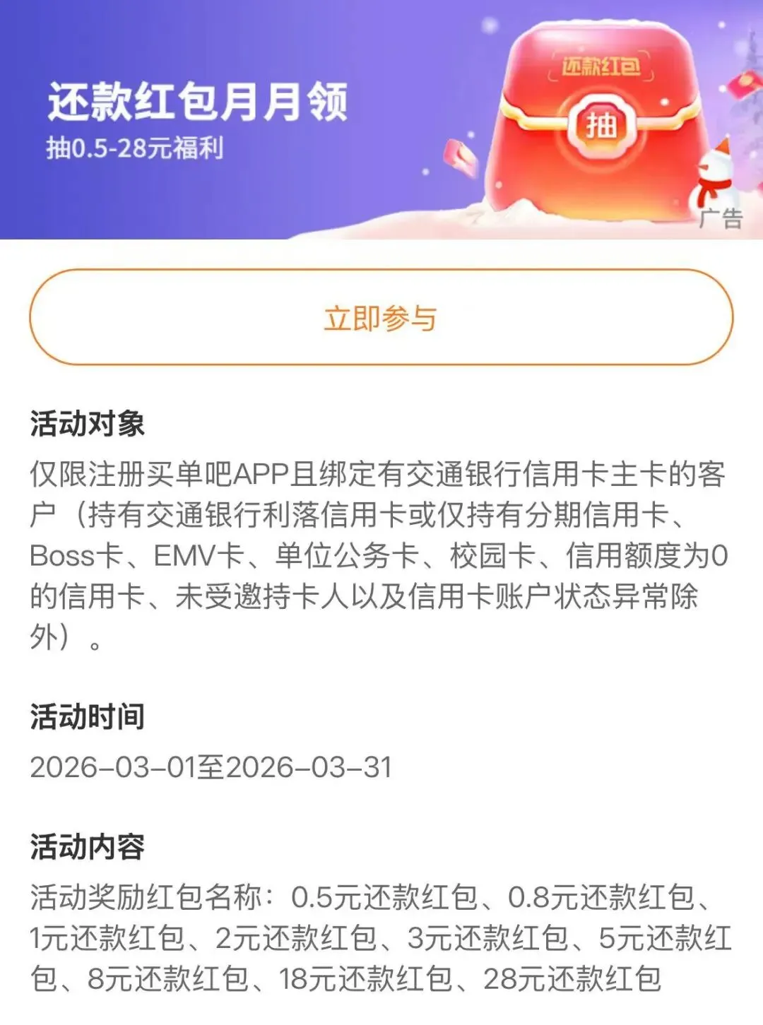 农业银行“资产提升有礼”活动整个一季度均可参与,活动时间即日起至2026年3月31日。参与路径为农行掌银APP-我的-星级专区-“资产提升有礼”活动页面。