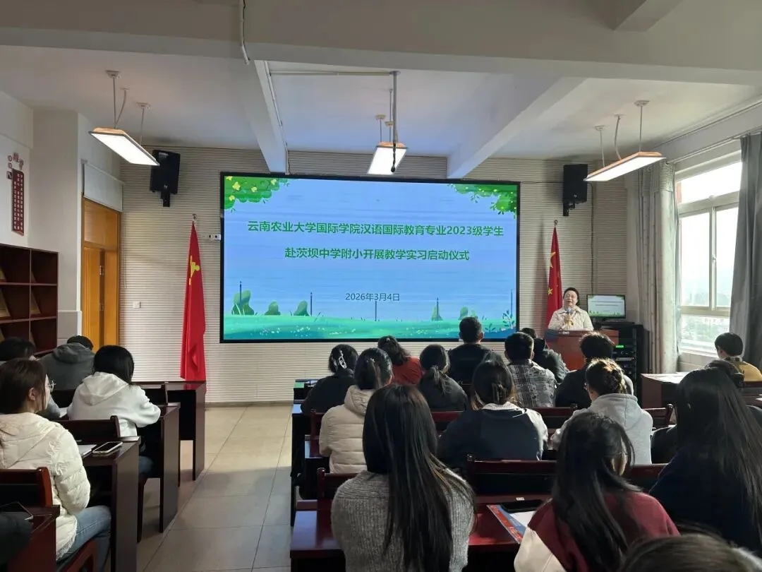 云南农业大学国际学院副院长在致辞中表示,教育实习是汉语国际教育专业人才培养的关键环节,感谢茨坝中学附小为学生们提供宝贵的实践平台。他勉励同学们珍惜机会,虚心向一线教师学习,将课堂理论转化为教学能力,展现农大学子的专业素养与精神风貌。