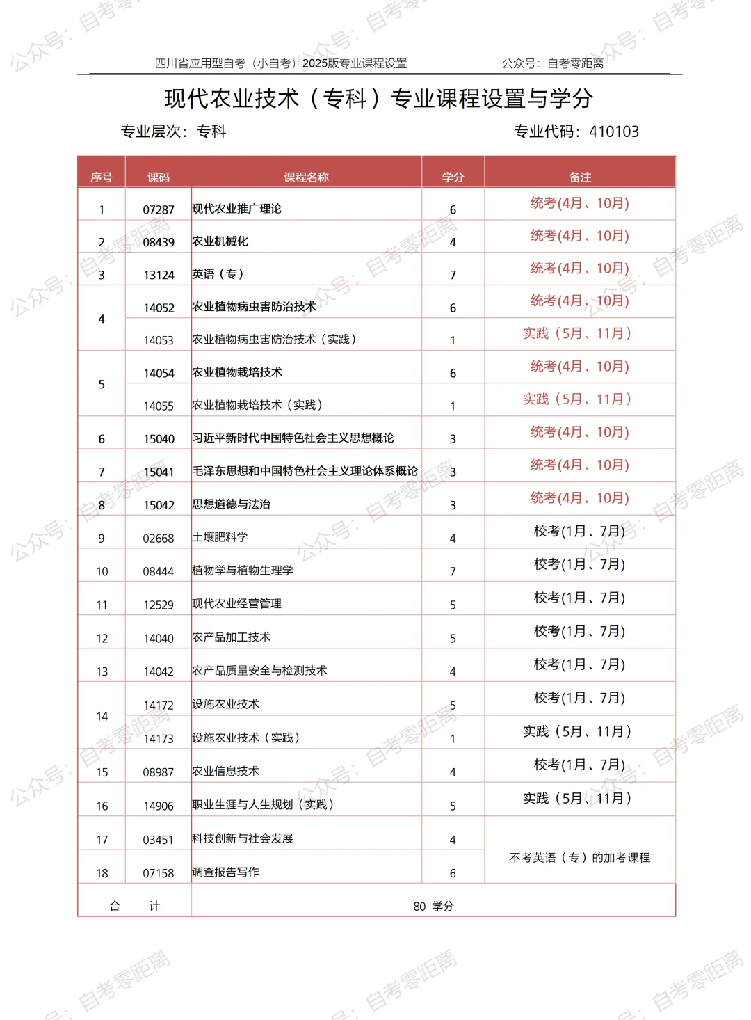 四川小自考-现代农业技术(专科)考试科目及学分设置(2025版)
