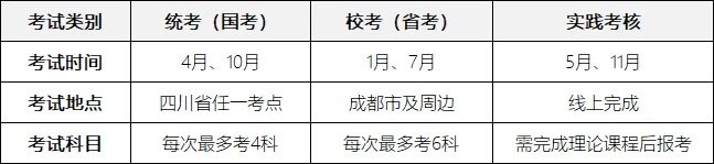 考试形式:统考、校考、实践(图片内备注处为统考课程,其余为校考、实践科目;