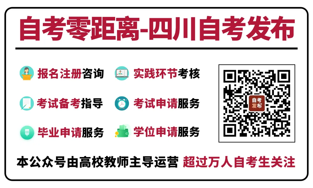 自考零距离是由资深教育人创立的自考资讯、自考交流、考试互动平台。主要发布四川省自学考试委员会自考报名、自考资讯等官方信息,提供招生考试资讯互动服务。