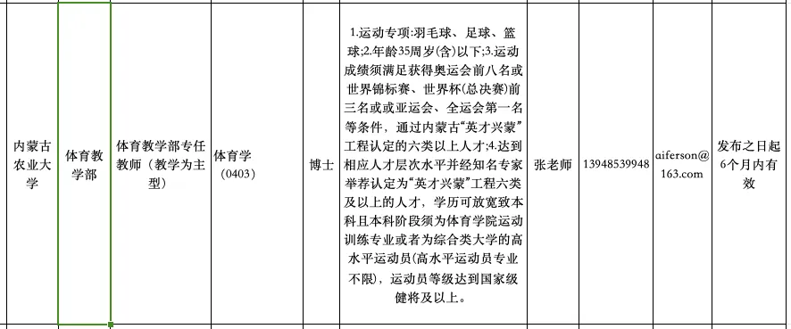 附件:内蒙古农业大学2026年“绿色通道”引进人才需求信息表