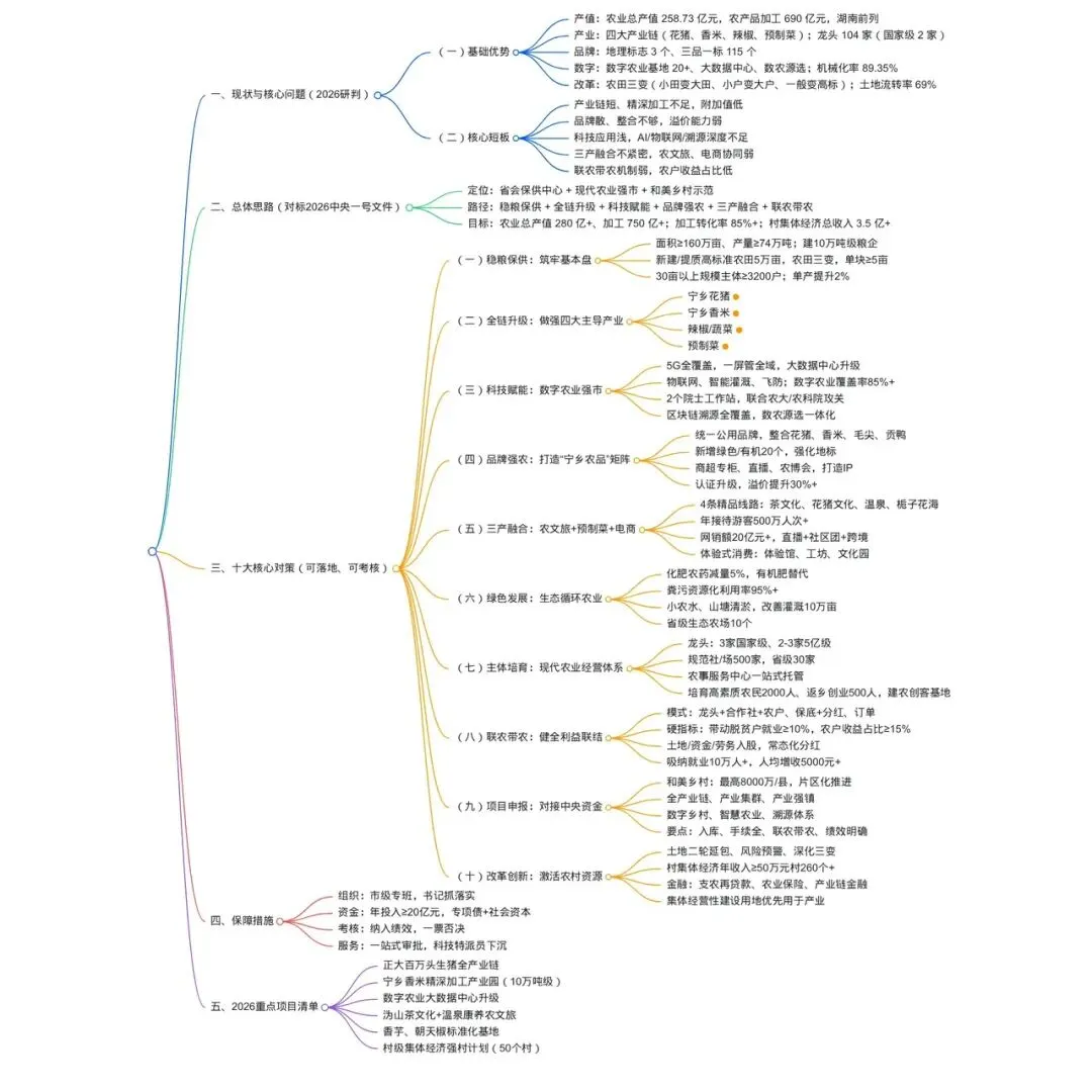 • 目标:2026年农业总产值突破280亿元,加工产值750亿元;农产品加工转化率85%+;村级集体经济总收入3.5亿元+