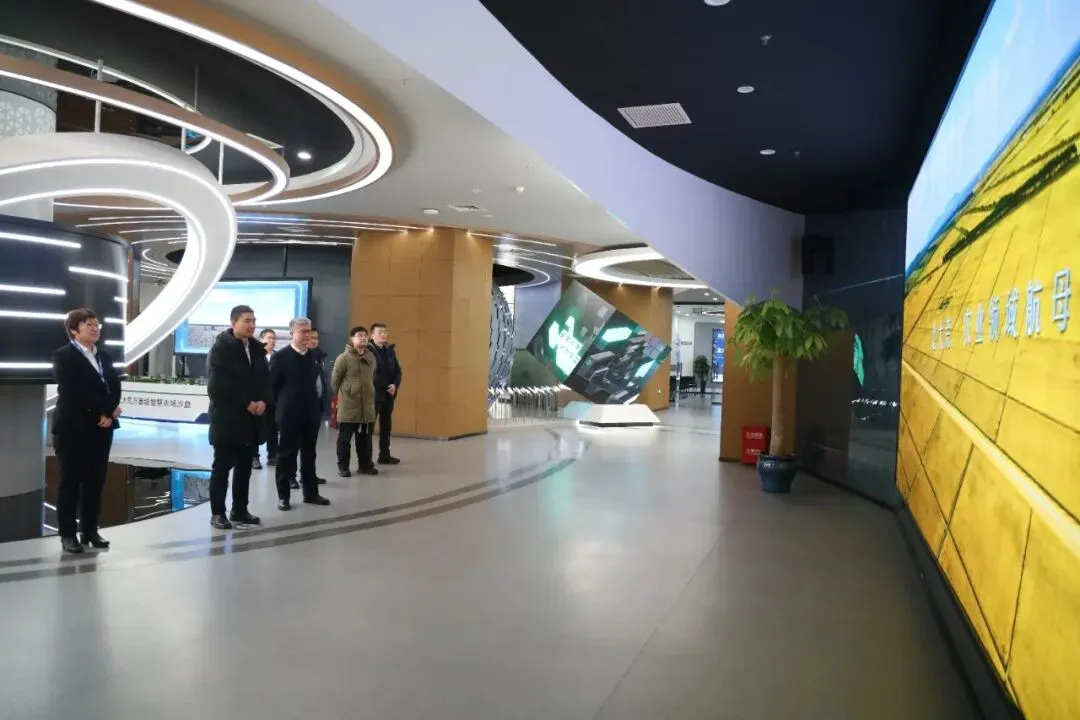 3月4日,农业农村部科学技术司区域处一级调研员王敬华一行在省农业农村厅科技处处长李钢、副处长王恩旭陪同下到北大荒信息公司参观交流,信息公司党总支副书记、总经理任荣荣,北大荒集团科技信息产业部副总经理史大勇,信息公司副总经理冯国惠及相关工作人员陪同参观。