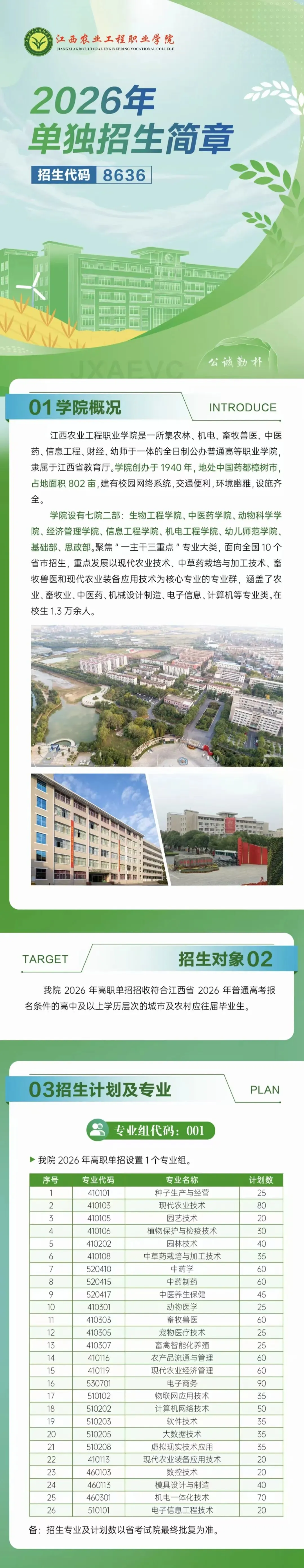 #26单招#江西农业工程职业学院2026年单独招生简章(附技能校考考试大纲和样题)