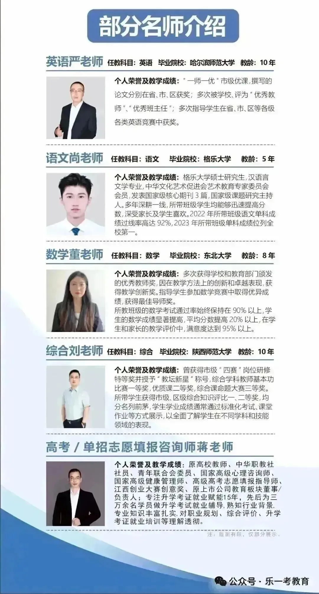 乐一考教育师资力量雄厚,现有教职工80余人,均具有多年从事单招辅导的教学经验。更是不乏来自名牌高校的教授级王牌名师。