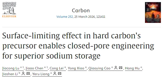 钠离子电池作为锂离子电池的成本效益高且可持续的替代方案,在大规模储能领域受到日益关注。这主要得益于钠资源的自然丰富性和低成本,以及电解液兼容性和电极/电解液界面稳定性等方面的优势。然而,钠离子电池的发展受限于缺乏合适的电极材料,特别是低成本高性能的负极材料。在各种候选材料中,硬碳因其高容量、低工作电压和优异的循环稳定性而成为最有前景的负极材料之一。硬碳的电化学行为通常在充放电曲线中呈现两个特征区域:0.1 V以上的斜坡区和0.1 V以下的平台区。值得注意的是,低电压平台区对总容量贡献显著,是实现钠离子电池高能量密度的关键。研究表明,该平台容量与闭孔的存在及其可及性密切相关,这些闭孔作为钠团簇的存储位点。因此,构建具有丰富且结构良好闭孔的硬碳是提升钠存储性能的核心策略。尽管已有多种方法用于提升硬碳的闭孔含量,包括调控碳前驱体的微观结构或组成、优化碳化工艺、使用造孔剂以及缩小孔入口等,但现有硬碳材料在最大化平台容量和长期稳定性方面仍存在不足,亟需开发简便有效的策略来工程化构建最优闭孔结构。前驱体的表面效应,特别是比表面积和表面化学反应性,对碳化行为和最终孔结构具有重要影响,但此类表面效应对孔演化和钠存储性能的影响机制尚未得到充分探索。