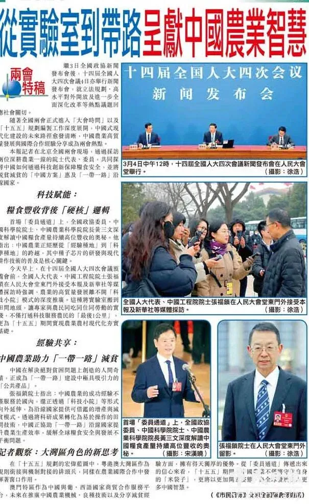 本報記者在北京全國兩會現場,通過採訪兩位深耕農業一線的院士代表、委員,共同探尋中國如何通過科技創新保障糧食安全,並將脫貧減貧的「中國方案」惠及「一帶一路」沿線國家。
