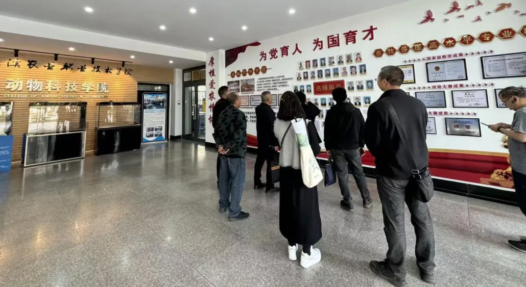 与会人员还实地参观了动物科技学院和学院食用菌智慧方舱建设项目,详细了解学院在现代农业、智慧养殖等方面的技术成果与发展优势,为后续推进舍郎社区水产养殖产业帮扶工作奠定基础。
