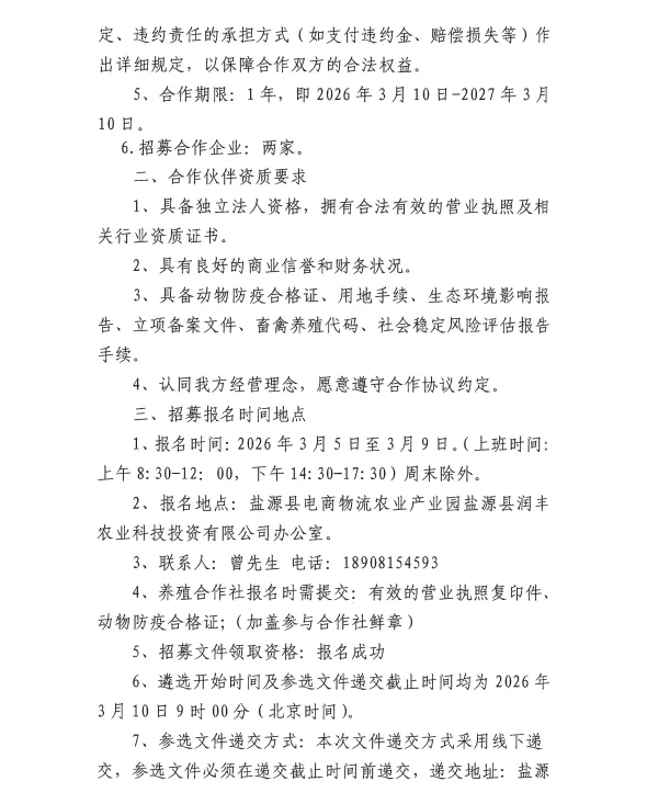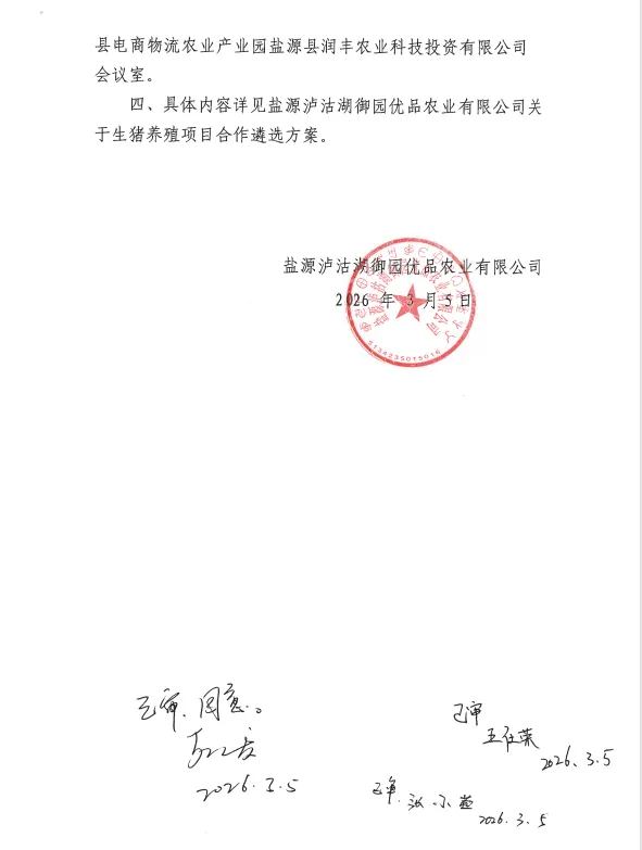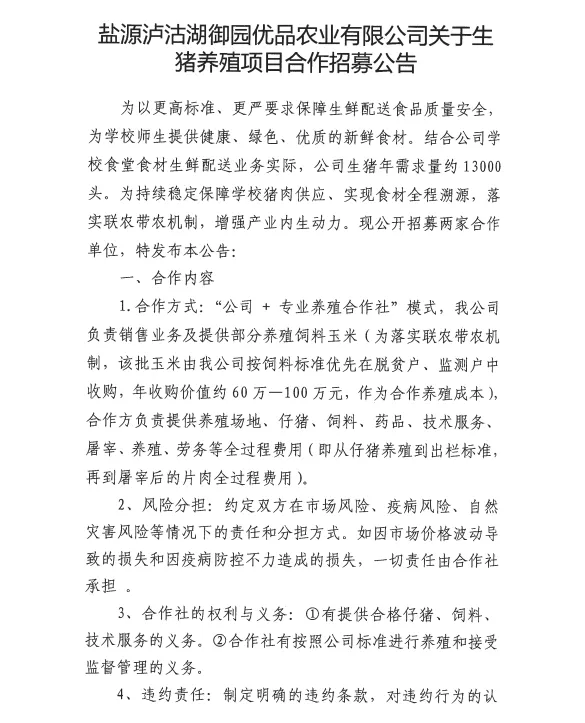 盐源泸沽湖御园优品农业有限公司关于生猪养殖项目合作招募公告