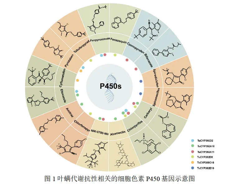 在抗性机制方面,该综述重点阐述了叶螨的两大核心防御策略:一是靶标抗性,系统梳理了钠离子通道、谷氨酸门控氯离子受体、乙酰胆碱酯酶以及线粒体电子传递链关键亚基基因的突变在抗性形成中的分子基础;二是代谢抗性,重点分析了细胞色素P450单加氧酶、羧酸酯酶、谷胱甘肽S-转移酶、UDP-糖基转移酶及ABC转运蛋白介导的农药解毒和外排系统在抗性进化中的功能与调控网络。综述指出,叶螨的抗药性已由单基因主效模式演变为多基因协同调控的复杂网络体系,普遍存在交互抗性与多重抗性等问题。