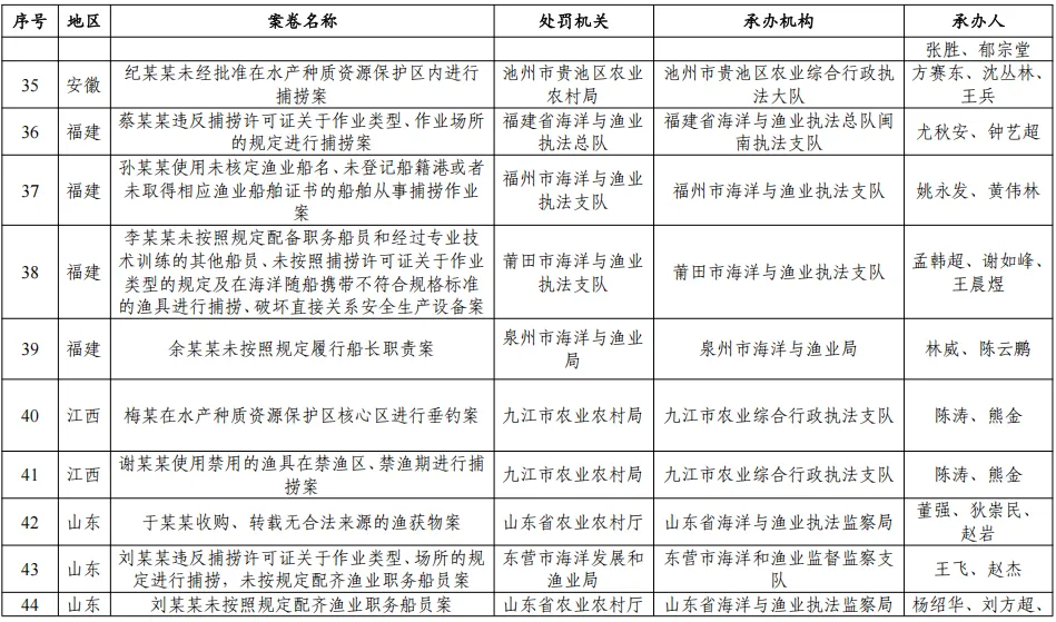 为进一步规范渔政执法工作,提升渔政执法人员办案能力和案卷制作水平,有效推动渔政执法队伍业务素质整体提升,按照中共中央办公厅、国务院办公厅《关于加强行政执法协调监督工作体系建设的意见》和国务院办公厅《提升行政执法质量三年行动计划(2023—2025年)》(国办发〔2023〕27号)推进行政执法案卷评查有关要求,农业农村部组织开展了2025年全国渔政执法案卷评查工作,并于近日印发《农业农村部办公厅关于2025年渔政执法案卷评议情况的通报》,公布2025年渔政执法质量较高案卷。