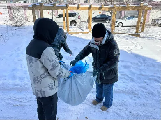 在清理过程中,志愿者们不仅关注主干道的畅通,更把目光聚焦在楼栋出入口、坡道等居民日常出行的关键路段,存在许多春节期间燃放烟花爆竹的纸屑、纸筒,既影响了小区的干净整洁,还为居民的出行埋下隐患。志愿者们将垃圾一一捡起,遇到进出小区的老人和孩子,细心提醒他们注意脚下安全。一抹抹“志愿红”在皑皑白雪映衬下,成为小区里最温暖的风景线。