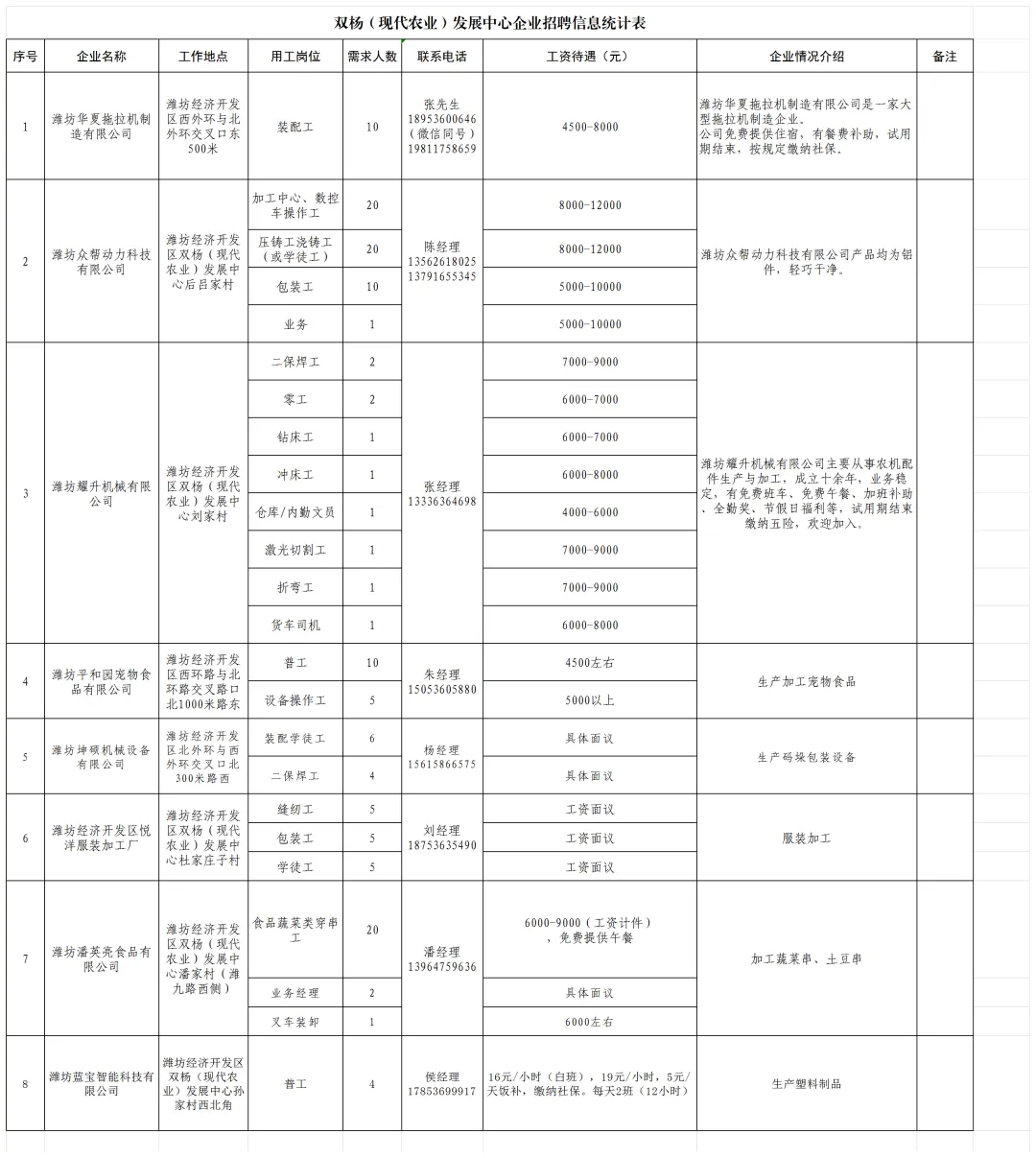>双杨(现代农业)发展中心企业招聘信息汇总