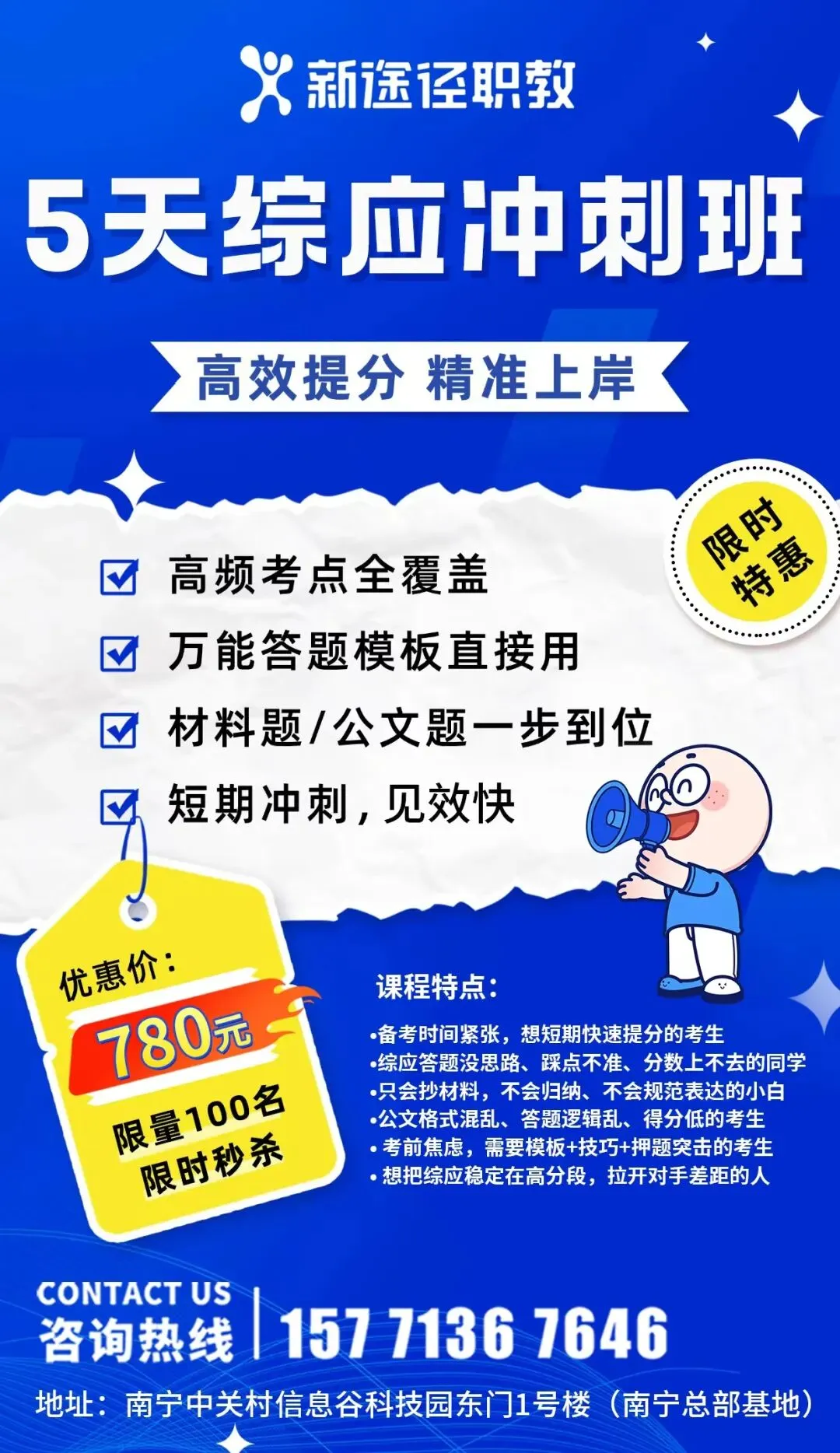 ✅ 考公专业团队:深耕广西国考培训多年,深谙广西考情、命题规律与岗位特点。教师团队均为经验丰富的公考专家,不仅理论功底扎实,更善于将复杂知识点转化为简单易懂的解题技巧,助你快速掌握考试要点。