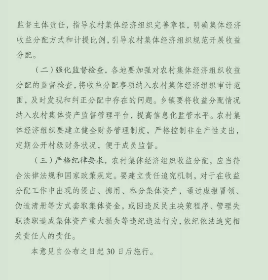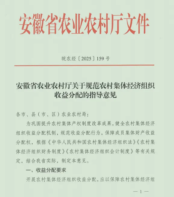 【村集体经济组织内部管理制度】安徽省农业农村厅关于规范农村集体经济组织收益分配的指导意见