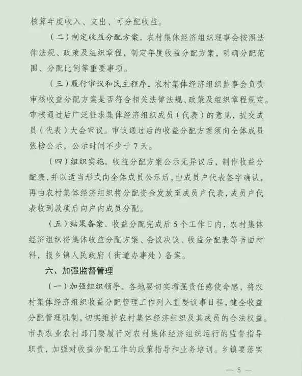 >【村集体经济组织内部管理制度】安徽省农业农村厅关于规范农村集体经济组织收益分配的指导意见